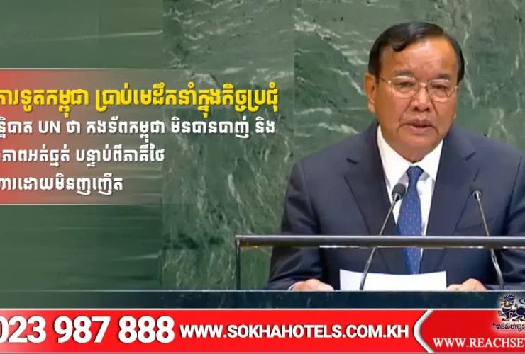 ភ្នំពេញ ៖ ក្នុងមហាសន្និបាតអង្គការសហប្រជាជាតិ (UN) លោកនាយករដ្ឋមន្ត្រី ប្រាក់ សុខុន រដ្ឋមន្ត្រីក្រសួងការបរទេស និងសហប្រតិបត្តិការអន្តរជាតិកម្ពុជា បានលើកឡើងថា កងទ័ពកម្ពុជា មិនបានបាញ់ និងបានរក្សាភាពអត់ធ្មត់ ដើម្បីបញ្ជាក់ពីការប្តេជ្ញាចិត្តដ៏មោះមុតចំពោះសន្តិភាព បន្ទាប់ពីភាគីថៃ វាយប្រហារមួយកន្លែងដោយមិនញញើត នៅជិតទីតាំងដ៏រសើប ...