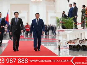 នាយករដ្ឋមន្ដ្រីកម្ពុជា ទទួលបដិសណ្ឋារកិច្ចស្វាគមន៍ នាយករដ្ឋមន្ត្រីសិង្ហបុរី សម្រាប់ដំណើរទស្សនកិច្ចផ្លូវការ នៅកម្ពុជា