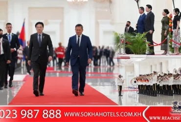 នាយករដ្ឋមន្ដ្រីកម្ពុជា ទទួលបដិសណ្ឋារកិច្ចស្វាគមន៍ នាយករដ្ឋមន្ត្រីសិង្ហបុរី សម្រាប់ដំណើរទស្សនកិច្ចផ្លូវការ នៅកម្ពុជា