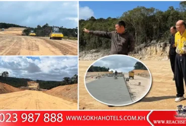 អ្នកឧកញ៉ា សុខ គង់ បង្ហាញភាពជោគជ័យក្នុងដំណើរការចាក់បេតុងលើផ្លូវតភ្ជាប់ពីភ្នំបូកគោ ទៅកាន់ផ្លូវជាតិលេខ៤