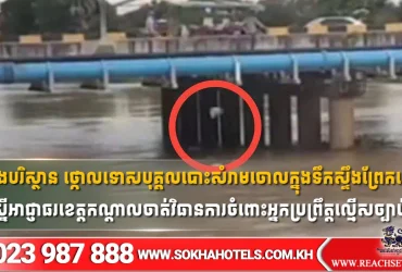 ក្រសួងបរិស្ថាន ថ្កោលទោសបុគ្គលបោះសំរាមចោលក្នុងទឹកស្ទឹងព្រែកត្នោត និងស្នេីអាជ្ញាធរខេត្តកណ្ដាលចាត់វិធានការចំពោះអ្នកប្រព្រឹត្តល្មេីសច្បាប់
