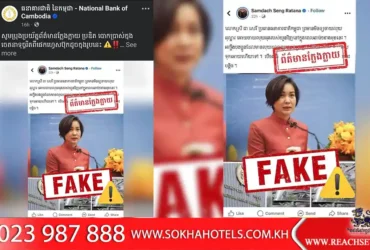 ធនាគារជាតិនៃកម្ពុជា ច្រានចោលការផ្សព្វផ្សាយព័ត៌មានមិនពិតរបស់ហ្វេសប៊ុកផេចឈ្មោះ Samdach Seng Ratana ដែលថាធនាគារជាតិ មិនឱ្យចាយលុយដុល្លារ ឱ្យចាយលុយដុងវិញ គឺជាព័ត៌មានក្លែងក្លាយ