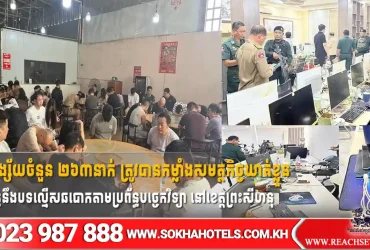 ជនសង្ស័យចំនួន ២៦៣នាក់ ត្រូវបានកម្លាំងសមត្ថកិច្ចឃាត់ខ្លួន ពាក់ព័ន្ធនឹងបទល្មើសឆបោកតាមប្រព័ន្ធបច្ចេកវិទ្យា នៅខេត្តព្រះសីហនុ