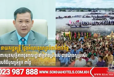 សម្ដេច នាយករដ្ឋមន្ដ្រី ថ្លែងអំណរគុណគ្រប់ភាគីពាក់ព័ន្ធ បានការពារសុខសុវត្ថិភាពជូនពលរដ្ឋនៅទូទាំងប្រទេស បានយ៉ាងល្អប្រសើរ ក្នុងឱកាសពិធីបុណ្យអុំទូក ៣ថ្ងៃ