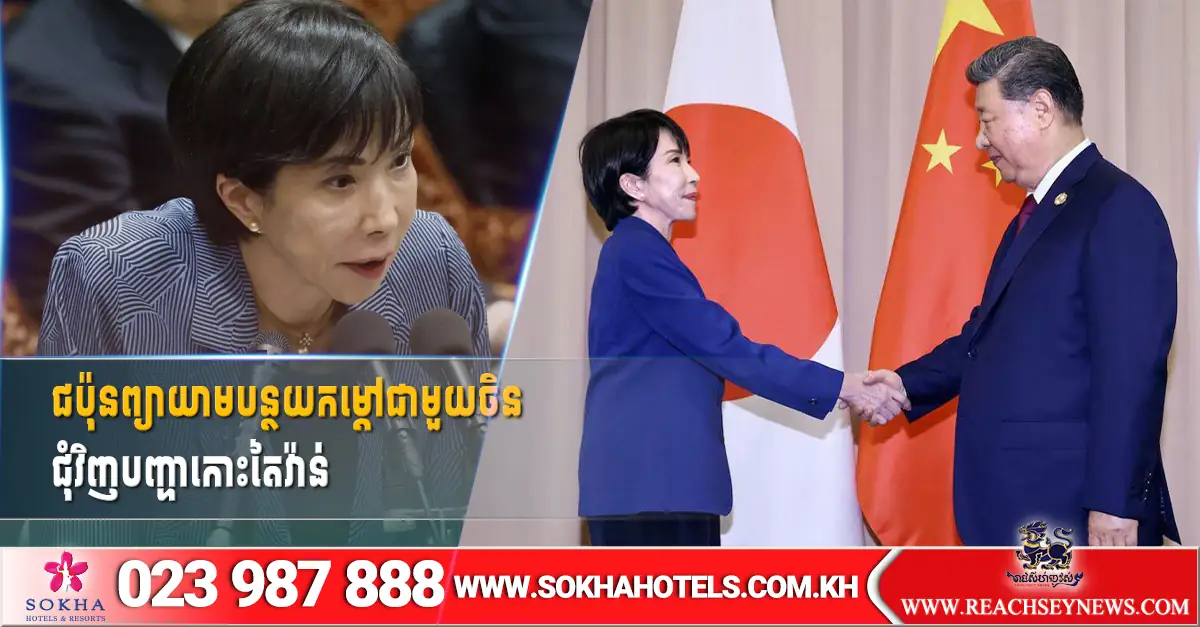 លោក Masaaki Kanai អគ្គនាយកនៃការិយាល័យអាស៊ី និងអូសេអានី របស់ក្រសួងការបរទេសជប៉ុន នឹងជួបសមភាគីចិន លោក Liu Jinsong នៅទីក្រុងប៉េកាំង ក្នុងសប្តាហ៍នេះ ប្រព័ន្ធផ្សព្វផ្សាយជប៉ុនបានរាយការណ៍កាលពីថ្ងៃចន្ទថា លោក Kanai ត្រូវបានគេរំពឹងថានឹងពន្យល់ចិនថា ការអត្ថាធិប្បាយរបស់លោកស្រី Takaichi មិនមែនជាសញ្ញានៃការផ្លាស់ប្តូរគោលនយោបាយសន្តិសុខរបស់ប្រទេសជប៉ុនទេ និងជំរុញឱ្យប្រទេសចិន ចៀសវាធ្វើសកម្មភាពដែលបំផ្លាញទំនាក់ទំនងប្រទេសទាំងពីរបន្ថែមទៀត។