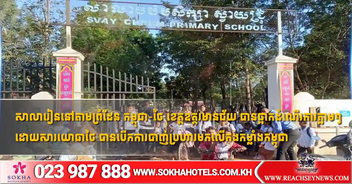 ភ្នំពេញ ៖ ក្រសួងអប់រំ យុវជន និងកីឡា បានប្រកាសថា សាលារៀននៅតាមព្រំដែនកម្ពុជា-ថៃ ខេត្តឧត្តរមានជ័យ បានផ្អាកដំណើរការភ្លាមៗជាបណ្ដោះអាសន្ន ដោយសារយោធាថៃបានបើកការបាញ់ប្រហារមកលើកងកម្លាំងកម្ពុជា នាព្រឹកថ្ងៃទី៨ ខែធ្នូ ឆ្នាំ២០២៥។ នេះបើយោងតាមគេទំព័រហ្វសប៊ុករបស់ ក្រសួងអប់រំ។