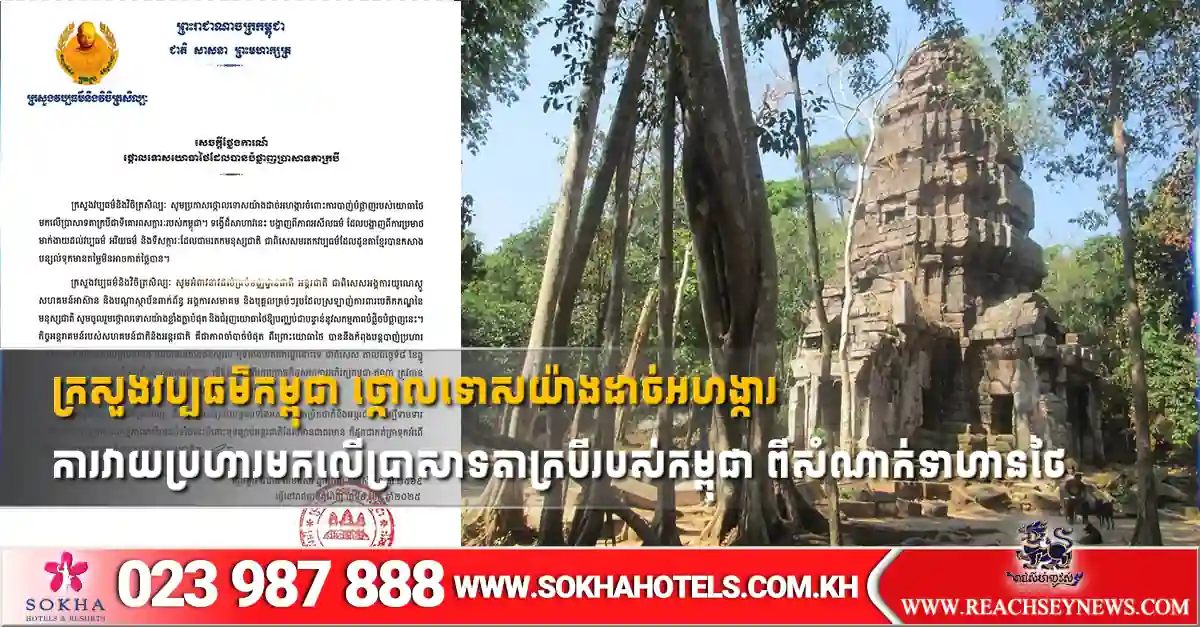 ភ្នំពេញ ៖ ក្រសួងវប្បធម៌ និងវិចិត្រសិល្បៈ បានអំពាវនាវដល់គ្រប់មជ្ឈដ្ឋានជាតិ អន្តរជាតិ ជាពិសេសអង្គការយូណេស្កូ សហគមន៍អាស៊ាន និងបណ្តាស្ថាប័នពាក់ព័ន្ធ អង្គការសមាគម និងបុគ្គលគ្រប់ៗរូប ចូលរួមថ្កោលទោសយ៉ាងខ្លាំងក្លាបំផុត និងជំរុញយោធាថៃឱ្យបញ្ឈប់ជាបន្ទាន់នូវសកម្មភាពបំផ្លិចបំផ្លាញប្រាសាទតាក្របី។ នេះយោងតាមសេចក្ដីថ្លែងការណ៍ ថ្កោលទោសយោធាថៃ។