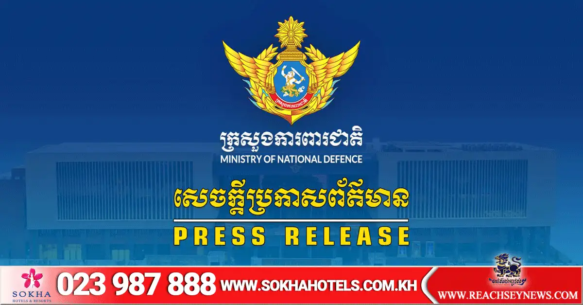 ក្រសួងការពារជាតិ គូសបញ្ជាក់ថា កម្ពុជា មិនបានបង្ហោះដ្រូនចូលដែនអធិបតេយ្យភាពថៃដូចការចោទប្រកាន់ដែលគ្មានការពិតនេះឡើយ និងសូមស្នើភាគីថៃប្រកាន់ខ្ជាប់នូវគោលការណ៍ដែលភាគីកម្ពុជាថៃបានឯកភាពគ្នាចៀសវាងការចែកចាយព័ត៌មានមិនពិត ឬព័ត៌មានក្លែងក្លាយដើម្បីកាត់បន្ថយភាពតានតឹង កាត់បន្ថយសាធារណមតិអវិជ្ជមាន និងលើកកម្ពស់បរិយាកាសអំណោយផលសម្រាប់កិច្ចសន្ទនាដោយសន្តិវិធីដែលជាចំណែកមួយក្នុងការអនុវត្តបទឈប់បាញ់ឱ្យបានពេញលេញ មានប្រសិទ្ធភាព និងការត្រឡប់មកប្រក្រតីភាពឡើងវិញ។