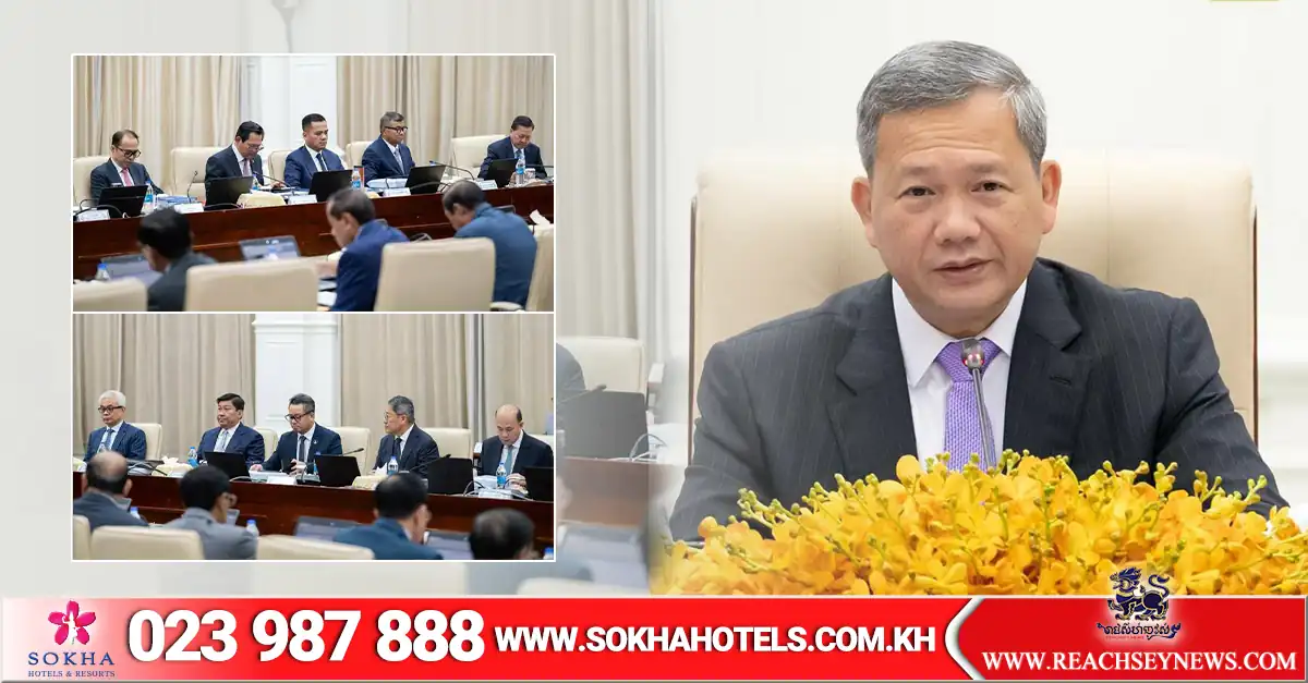 សម្តេចមហាបវរធិបតី ហ៊ុន ម៉ាណែត នាយករដ្ឋមន្រ្តី នៃព្រះរាជាណាចក្រកម្ពុជា អញ្ជើញជាអធិបតី ក្នុងកិច្ចប្រជុំពេញអង្គគណៈរដ្ឋមន្ត្រី ដើម្បីពិនិត្យ ពិភាក្សា និងឆ្លងលើរបៀបវារៈចំនួន៧ នៅវិមានសន្តិភាព រាជធានីភ្នំពេញ នាព្រឹកថ្ងៃទី២៦ ខែកញ្ញា ឆ្នាំ២០២៥។