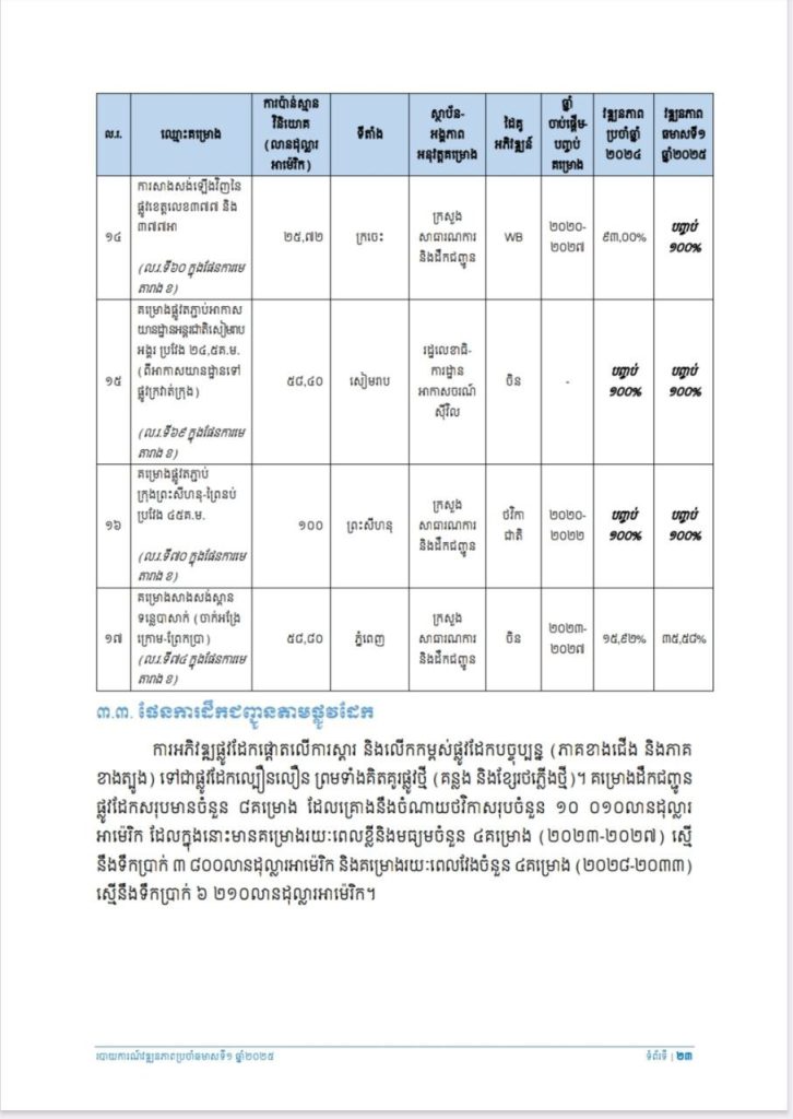 នេះបើយោងតាមរបាយការណ៍វឌ្ឍនភាពប្រចាំឆមាសទី១ ឆ្នាំ២០២៥ ស្តីពីការអនុវត្តផែនការមេគ្រប់ជ្រុងជ្រោយ ស្តីពីប្រព័ន្ធដឹកជញ្ជូនអន្តរមធ្យោបាយ និងភស្តុភារកម្មកម្ពុជា ២០២៣-២០៣៣ របស់ក្រសួងសាធារណការ និងដឹកជញ្ជូន។