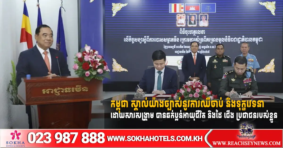 ពិធីចុះហត្ថលេខានេះ នឹងត្រូវធ្វើការបោសសម្អាតផ្ទៃដីមានមីនចំនួន ៤១.៧៩៦.២៦៣ ម៉ែត្រការ៉េ ស្មើនឹង ៤៥៣ ចម្ការមីន ក្នុងខេត្តចំនួន ០៦ រួមមាន ខេត្តបន្ទាយមានជ័យ ខេត្តឧត្តរមានជ័យ ខេត្តសៀមរាប ខេត្តបាត់ដំបង ខេត្តព្រះវិហារ និងខេត្តពោធិ៍សាត់ ដោយប្រើប្រាស់ថវិកាសរុបចំនួន ៥ លានដុល្លារសហអាមេរិក។