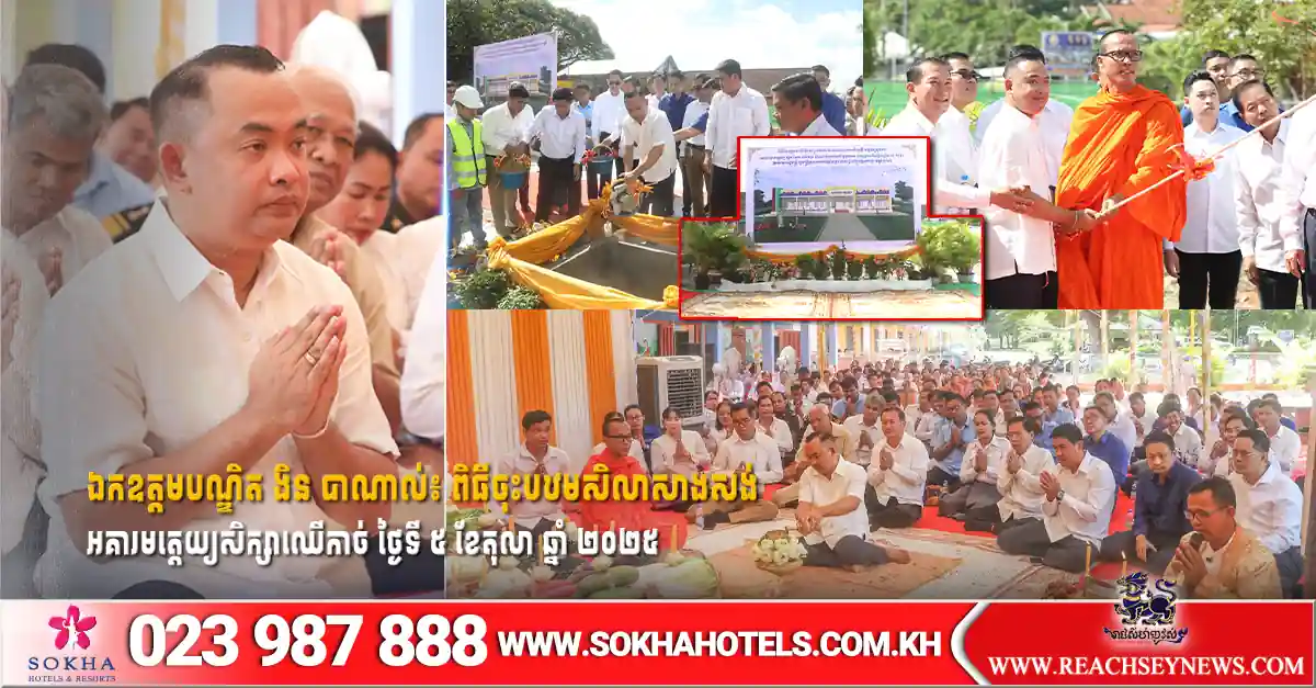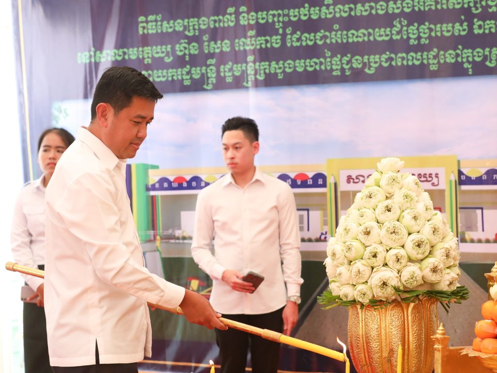 ឯកឧត្តមបណ្ឌិត ងិន បាណាល់ ប្រធានក្រុមការងាររាជរដ្ឋាភិបាលចុះមូលដ្ឋានស្រុកបាភ្នំ និងជាតំណាងដ៏ខ្ពង់ខ្ពស់របស់ ឯកឧត្តមអភិសន្តិបណ្ឌិត ស សុខា ឧបនាយករដ្ឋមន្រ្តី រដ្ឋមន្រ្តីក្រសួងមហាផ្ទៃ និងជាប្រធានក្រុមការងាររាជរដ្ឋាភិបាលចុះមូលដ្ឋានខេត្តព្រៃវែង បានអញ្ជើញជាអធិបតីក្នុងពិធីចុះបឋមសិលាសាងសង់ អគារមត្តេយ្យសិក្សាឈើកាច់ នៅថ្ងៃទី ៥ ខែតុលា ឆ្នាំ ២០២៥។