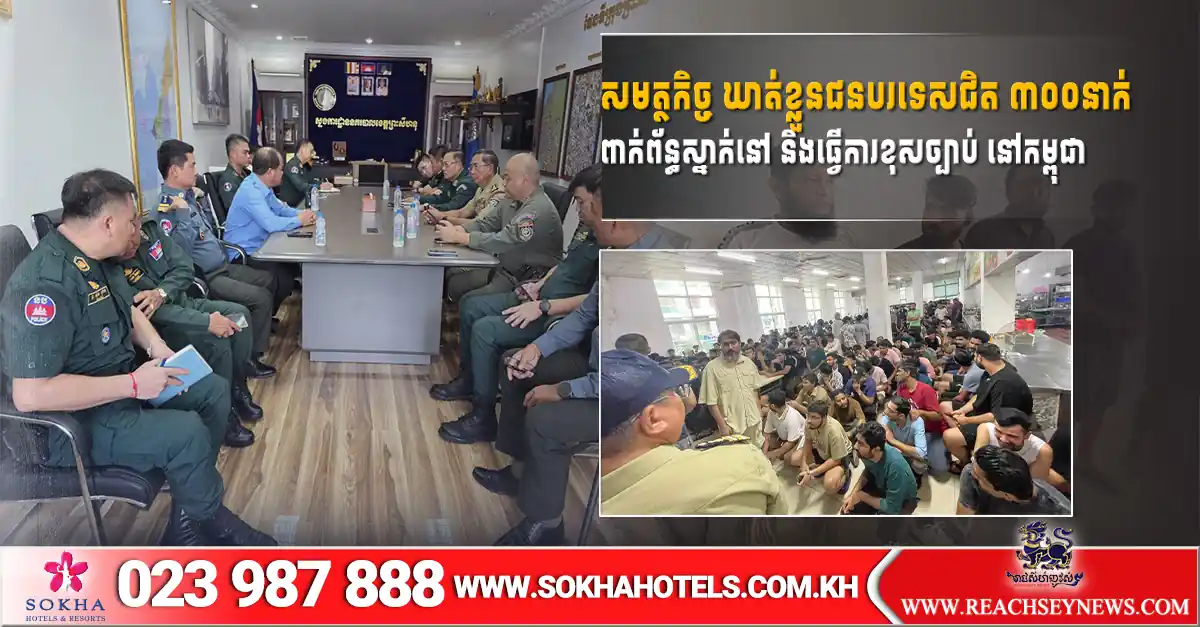 សមត្ថកិច្ច ឃាត់ខ្លួនជនបរទេសជិត ៣០០នាក់ ពាក់ព័ន្ធស្នាក់នៅ និងធ្វើការខុសច្បាប់ នៅកម្ពុជា