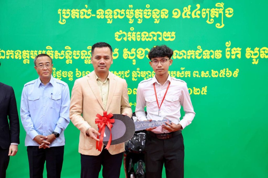 ក្នុងឱកាសនោះ ដើម្បីជាការលើកទឹកចិត្ត លោកឧបនាយករដ្ឋមន្ត្រី ស សុខា ក៏បានផ្តល់ជូនម៉ូតូ ដល់សិស្សដែលទទួលបាននិទ្ទេស A ទាំង ១៥៤នាក់ ដោយក្នុងម្នាក់ៗ ម៉ូតូ ចំនួន ១គ្រឿង និងថវិកា ព្រមទាំងសម្ភារៈមួយចំនួនផងដែរ៕
