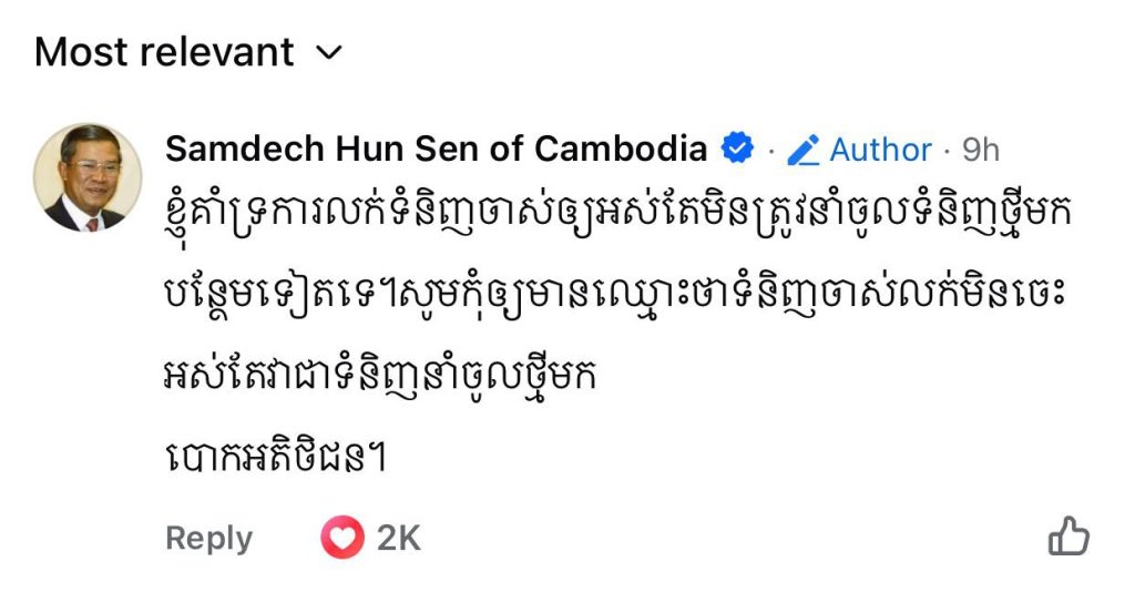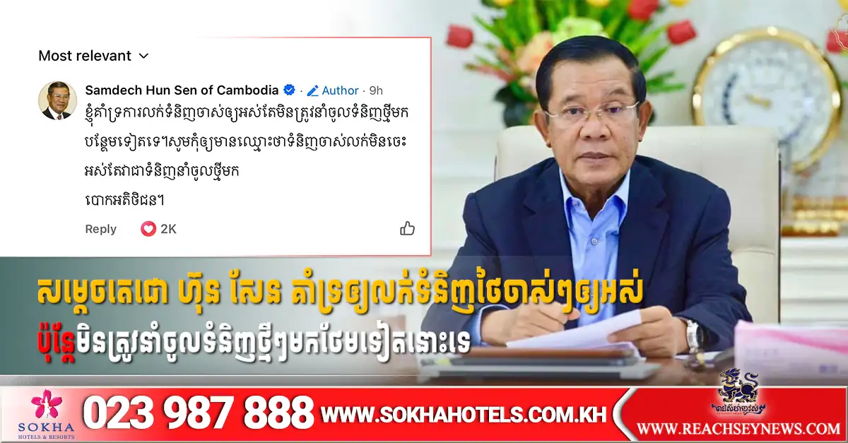 សម្តេចតេជោ ហ៊ុន សែន គាំទ្រឲ្យលក់ទំនិញថៃចាស់ៗឲ្យអស់ ប៉ុន្តែមិនត្រូវនាំចូលទំនិញថ្មីៗមកថែមទៀតនោះទេ