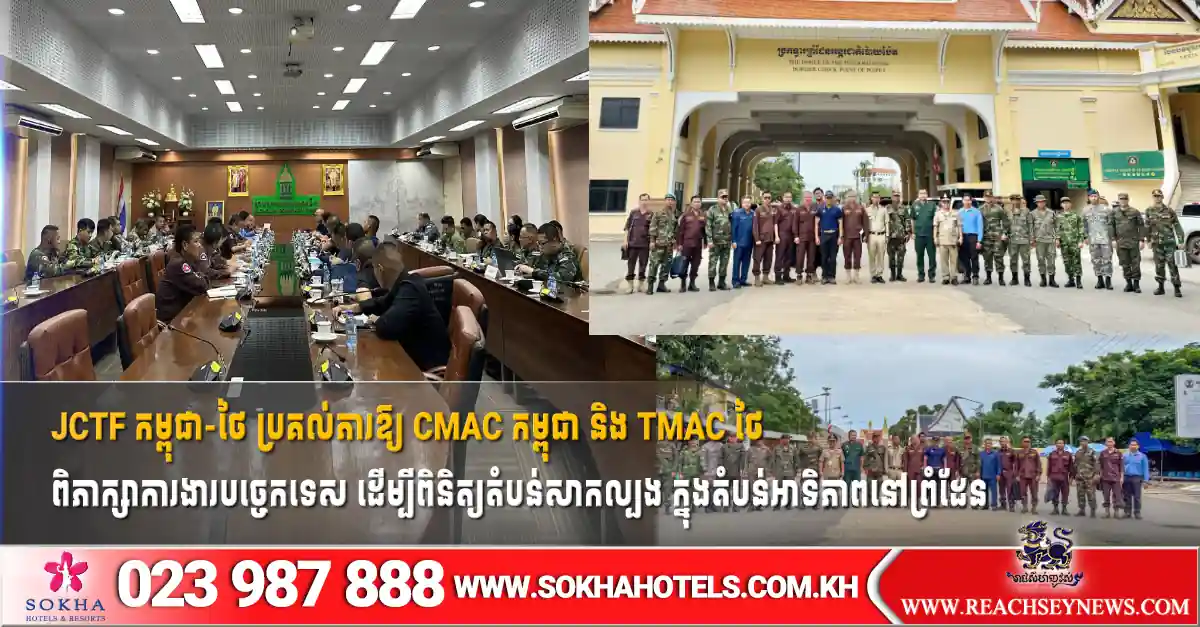 ភ្នំពេញ ៖ នៅថ្ងៃទី៧ ខែវិច្ឆិកា ឆ្នាំ២០២៥ ក្រុមការងារសម្របសម្រួលចម្រុះ (JCTF) កម្ពុជា-ថៃ លើការងារដោះមីនមនុស្សធម៌ បានប្រគល់ភារកិច្ចជូនក្រុមការងារ នៃមជ្ឈមណ្ឌលសកម្មភាពកំចាត់មីនកម្ពុជា (CMAC) និងក្រុមការងារនៃមជ្ឈមណ្ឌលសកម្មភាពកំចាត់មីនថៃ (TMAC) ឱ្យជួបប្រជុំពិភាក្សាការងារបច្ចេកទេស ដើម្បីពិនិត្យតំបន់សាកល្បងក្នុងតំបន់អាទិភាពនៅព្រំដែន ដែលស្ថិតនៅឃុំអូរបីជាន់ ស្រុកអូរជ្រៅ ខេត្តបន្ទាយមានជ័យ ព្រះរាជាណាចក្រកម្ពុជា ទល់មុខ ឃុំណូនម៉ាកម៉ូន ស្រុកគោកស៊ូង ខេត្តស្រះកែវ ព្រះរាជាណាចក្រថៃ។