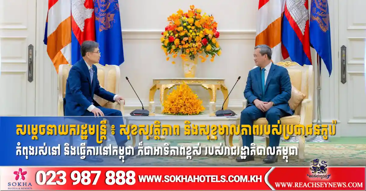 ជាមួយគ្នានេះ, សម្ដេចបវរធិបតី ក៏បានកោតសរសើរ និងថ្លែងអំណរគុណចំពោះរដ្ឋាភិបាលសាធារណរដ្ឋកូរ៉េ ដែលតែងតែយកចិត្តទុកដាក់ និងផ្ដល់ភាពកក់ក្ដៅដល់ប្រជាពលរដ្ឋកម្ពុជា ដែលកំពុងរស់នៅ និងធ្វើការ នៅសាធារណរដ្ឋកូរ៉េ។ សម្ដេចបវរធិបតី ក៏បានសង្កត់ធ្ងន់ផងដែរថា «សុខសុវត្ថិភាព និងសុខុមាលភាពរបស់ប្រជាជនកូរ៉េ ដែលកំពុងរស់នៅ និងធ្វើការនៅកម្ពុជា ក៏ជាអាទិភាពខ្ពស់របស់រាជរដ្ឋាភិបាលកម្ពុជា»៕