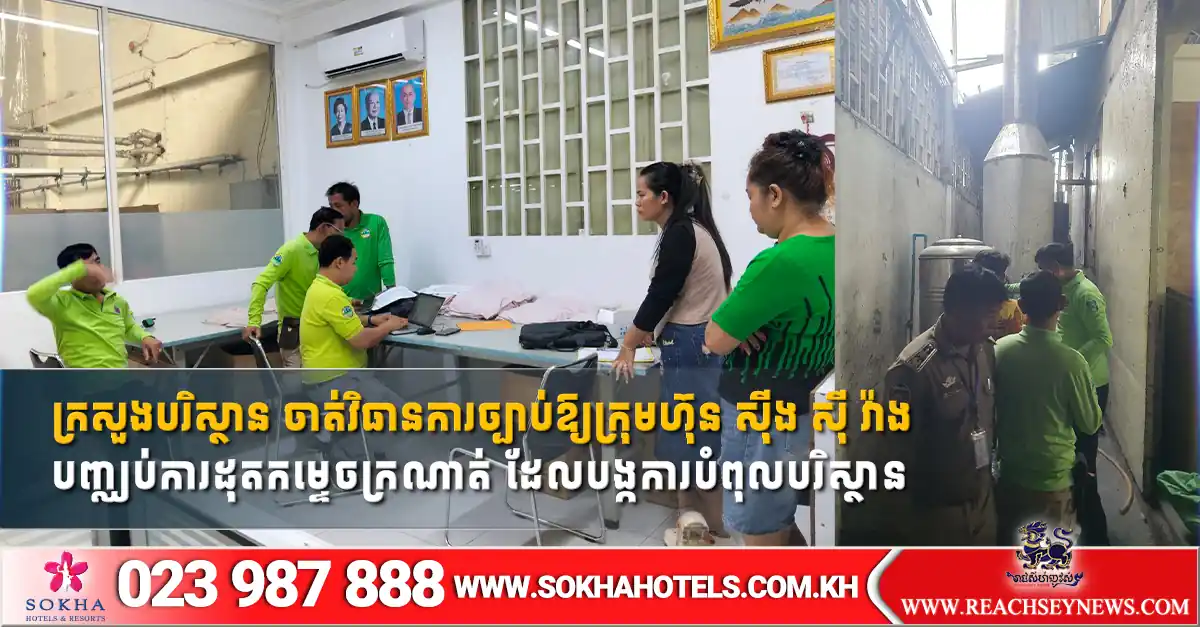 សូមបញ្ជាក់ថា ក្រុមការងារអធិការកិច្ច នៃអគ្គនាយកដ្ឋានគាំពារបរិស្ថានដឹកនាំដោយលោក ជោ ថុល អនុប្រធាននាយកដ្ឋាន ដោយមានការចូលរួមពីរដ្ឋបាលខណ្ឌពោធិ៍សែនជ័យ និងមន្ទីរបរិស្ថានរាជធានីភ្នំពេញ នៅថ្ងៃទី១៧ ខែវិច្ឆិកា ឆ្នាំ២០២៥ បានរកឃើញ ក្រុមហ៊ុន ស៊ីង ស៊ី វ៉ាង (ខេមបូឌា) ដែលជាប្រភេទសេវាកាត់ដេរសម្លៀកបំពាក់ ស្ថិតភូមិគោកចំបក់ សង្កាត់ចោមចៅទី១ ខណ្ឌពោធិ៍សែនជ័យ រាជធានីភ្នំពេញ បានធ្វើការបំពុលបរិស្ថាន។