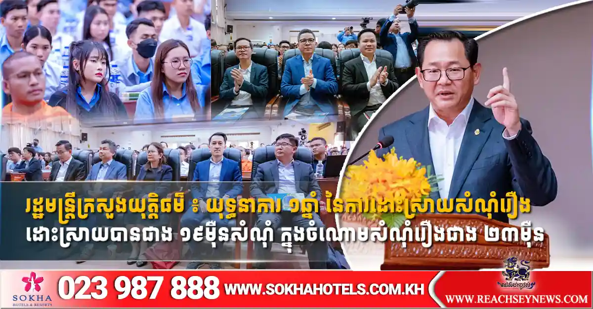 ភ្នំពេញ ៖ លោកឧបនាយករដ្ឋមន្ត្រី កើត រិទ្ធ រដ្ឋមន្ត្រីក្រសួងយុត្តិធម៌ បានថ្លែងថា យុទ្ធនាការ១ឆ្នាំនៃការដោះស្រាយសំណុំរឿងកកស្ទះនៅតុលាការ ដោះស្រាយបានជាង ១៩ម៉ឺនសំណុំ ក្នុងចំណោមសំណុំរឿងជាង ២៣ម៉ឺន ដែលតុលាការទូទាំងប្រទេសទទួលបាន។