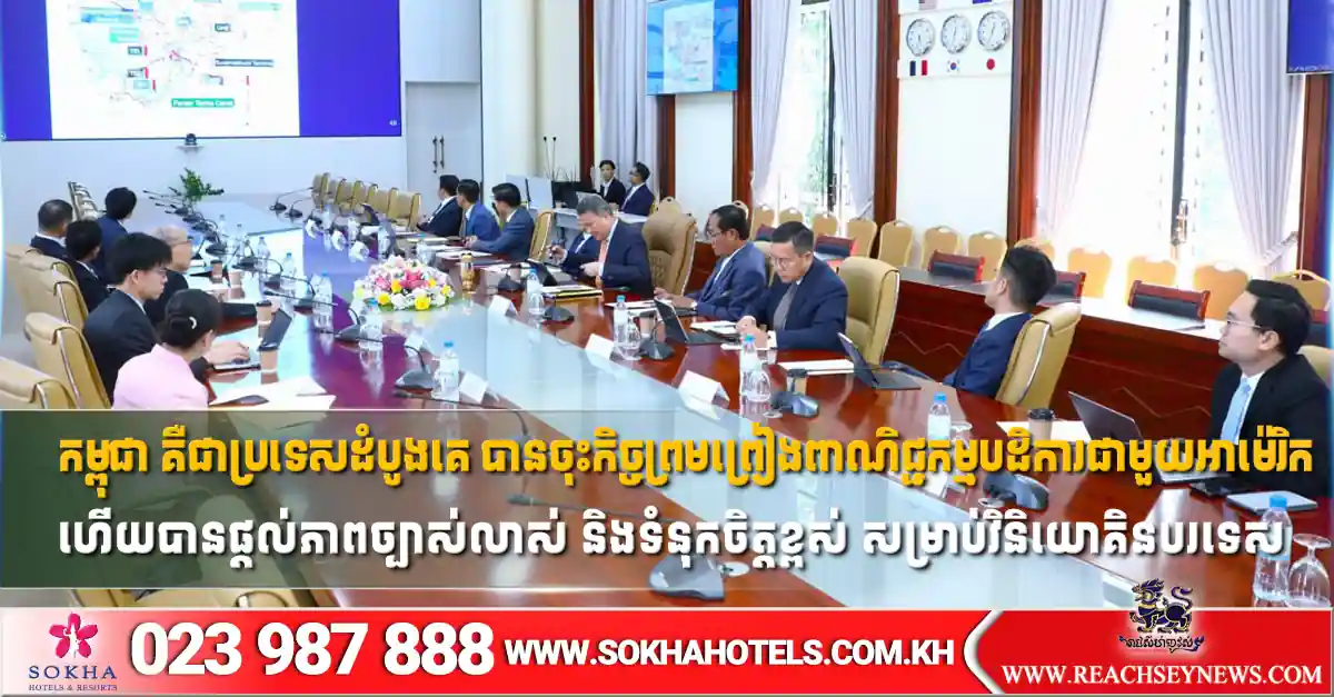 កម្ពុជា គឺជាប្រទេសដំបូងគេ បានចុះកិច្ចព្រមព្រៀងពាណិជ្ជកម្មបដិការជាមួយអាម៉េរិក ហើយបានផ្ដល់ភាពច្បាស់លាស់ និងទំនុកចិត្តខ្ពស់ សម្រាប់វិនិយោគិនបរទេស