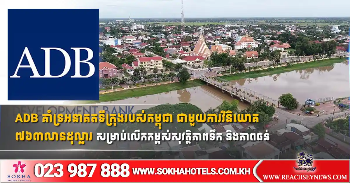 ភ្នំពេញ ៖ នៅថ្ងៃទី១ ខែធ្នូ ឆ្នាំ២០២៥ ធនាគារអភិវឌ្ឍន៍អាស៊ី (ADB) បានអនុម័តកម្មវិធីវិនិយោគចំនួន ៧៦៣ លានដុល្លារ ក្នុងនោះរួមមាន ជំនួយឥតសំណងចំនួន ២០ លានដុល្លារពីមូលនិធិអភិវឌ្ឍន៍អាស៊ី (ADF) ដើម្បីគាំទ្រកម្ពុជា ពង្រីកលទ្ធភាពទទួលបានការផ្គត់ផ្គង់ទឹកស្អាតនិងអនាម័យ ពង្រឹងសន្តិសុខទឹក និង លើកកម្ពស់ភាពធន់និងភាពសមស្របសម្រាប់រស់នៅនៃទីក្រុងរបស់ប្រទេស។ នេះបើយោងតាមសេចក្ដីប្រកាសព័ត៌មាន ADB។