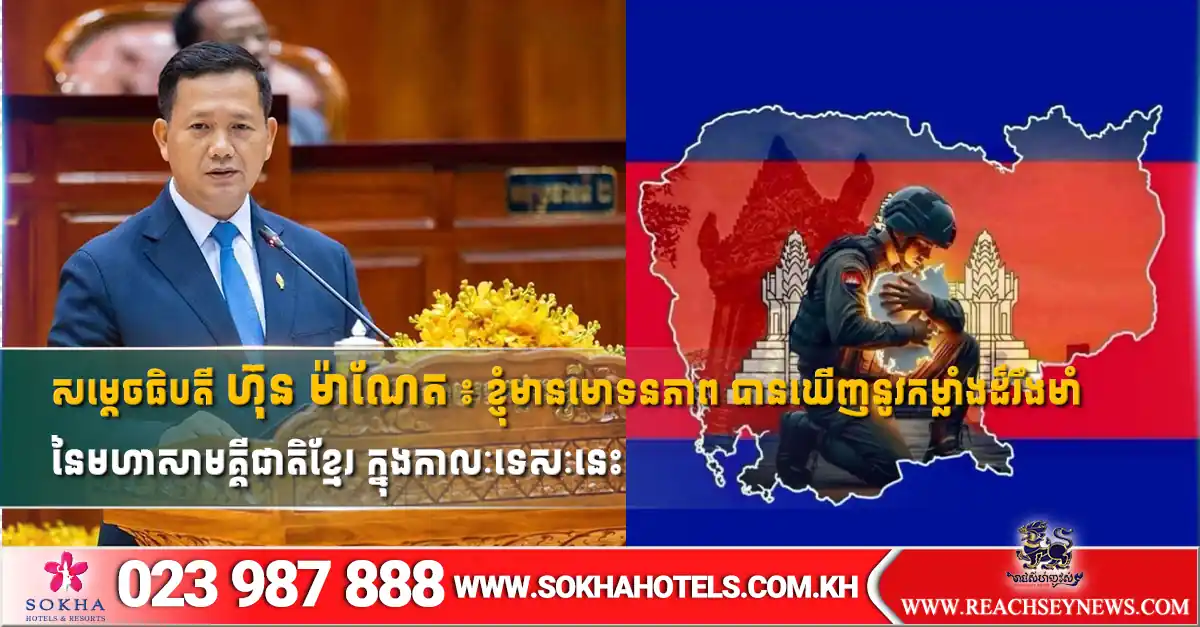 ភ្នំពេញ ៖ សម្តេចធិបតី ហ៊ុន ម៉ាណែត នាយករដ្ឋមន្រ្តីកម្ពុជា បានផ្ញើសារតាមរយៈបណ្តាញទំនាក់ទំនងសង្គម នៅថ្ងៃទី១៤ ខែធ្នូ ឆ្នាំ២០២៥នេះ ថា «ខ្ញុំមានមោទនភាព ដែលបានឃើញនូវកម្លាំងដ៏រឹងមាំនៃមហាសាមគ្គីជាតិខ្មែរក្នុងកាលៈទេសៈដែលប្រទេសជាតិយើងកំពុងជួបប្រទះនឹងការលំបាកដោយសារការឈ្លានពានពីប្រទេសជិតខាង»។