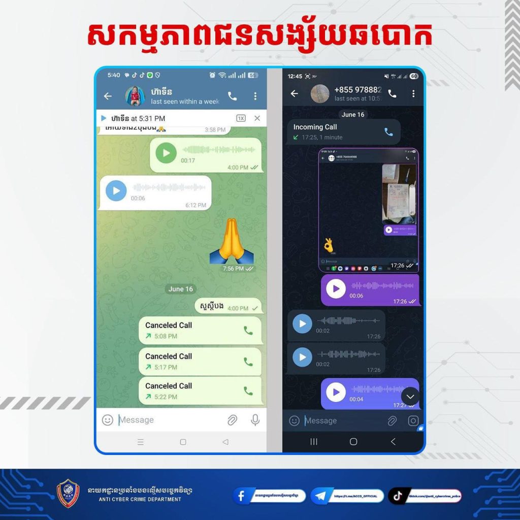 ភ្នំពេញ ៖ នាយកដ្ឋានប្រឆាំងបទល្មើសបច្ចេកវិទ្យា បានបង្រ្កាបករណី ជនអនាមិកបន្លំលួចគ្រប់គ្រង និងប្រើប្រាស់ គណនីបណ្ដាញសង្គម តេឡេក្រាម បោកបញ្ឆោតជនរងគ្រោះ ក្រោមរូបភាពបន្លំជាអ្នករកស៊ីជាមួយគ្នា។